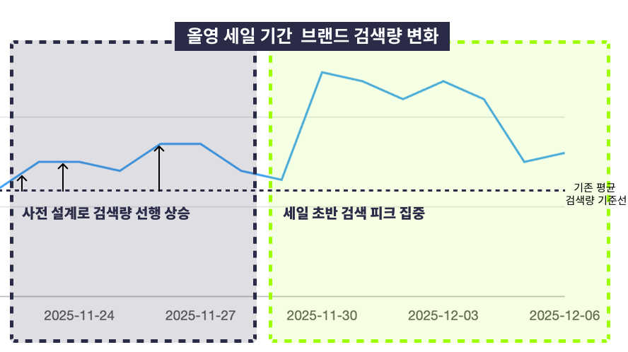 또한, 사전 설계를 통해 세일 직전부터 검색량을 끌어올리며 세일 초반 검색 피크에 집중